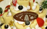ロールちゃん3本使用です。切って並べて、フルーツでデコレーションして、簡単にクリスマスケーキの完成です。